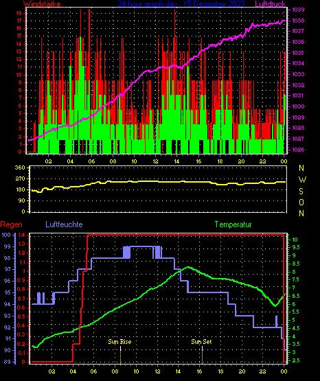 | Maximaler Luftdruck | 1038.1 hPa | 23:59 Uhr | |